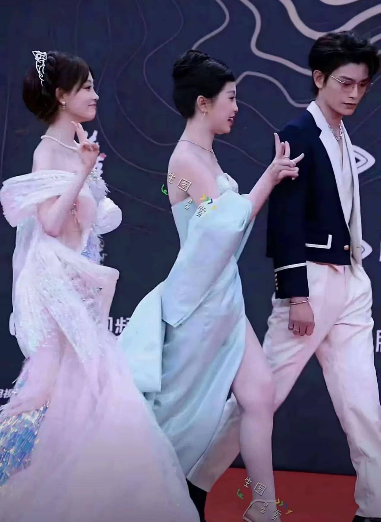 还有虞书欣喜欢抢位置,比如星光大赏上抢占王鹤棣的位置,明明主办方已经标好了艺人的位置;比如吴磊在台上想让胡歌站C位,可一转头,虞书欣却早已在C位了。